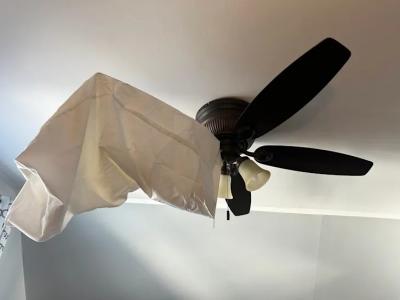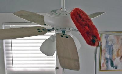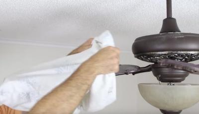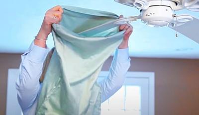 आता ओले कव्हर पंख्याच्या एका पात्यावर पूर्णपणे घाला. कव्हर पात्यावर पूर्णपणे घातल्यावर, ते हळू हळू बाहेरच्या दिशेने ओढा. त्यामुळे पात्यावरील सर्व धूळ कव्हरच्या आत जमा होईल.