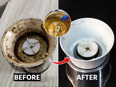 मिक्सर जार धुताना बहुतेक लोक तळ स्वच्छ करायला विसरतात. कारण हे स्वच्छ करणं खूप कठीण असतं. अनेकदा याकडे आपण दुर्लक्ष करतो, ज्यामुळे घाण जास्त प्रमाणात साचून त्यावर काळाकुट्ट आणि चिकट थर साचतो.पण या सोप्या टिप्स फॉलो केल्यातर ग्राइंडर स्वच्छ होण्यास मदत होईल. (kitchen cleaning hacks)