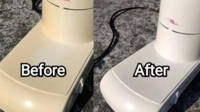 मिक्सरच्या जारमध्ये बेकिंग सोडा आणि थोडे व्हिनेगर घालून पेस्ट तयार करा. १० मिनिटे तसेच ठेवून स्पंज किंवा ब्रशने मिक्सर स्वच्छ करा. पिवळे डाग आणि दुर्गंधी दूर होईल.