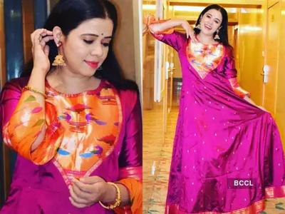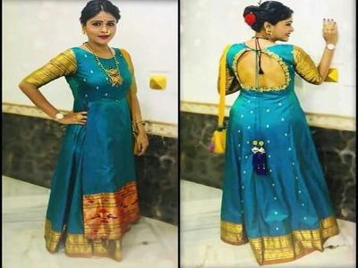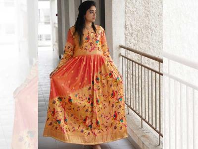 जर तुम्हाला मॉडर्न आऊटफिट्स नको असतील तर तुम्ही अशा प्रकारे पैठणचा घेरदार अनारकली ड्रेस देखील शिवू शकता.