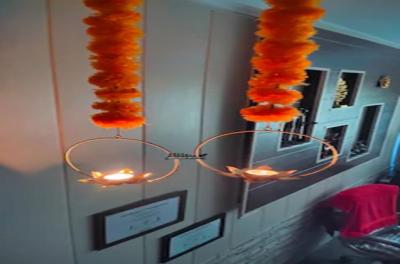 अशा प्रकारच्या माळा देखील बाजारात मिळतात. किंवा तुमच्या घरी झेंडूच्या फुलांच्या आर्टिफिशियल माळा असतील तर त्या माळांच्या खालच्या टोकाला एखादी तार बांधून त्यावर बॅटरीवर चालणारे दिवे ठेवू शकता.