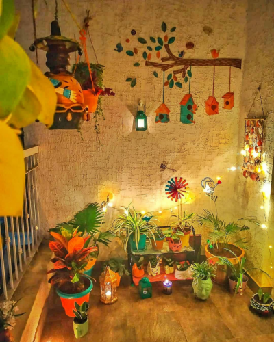 तुमच्या बाल्कनीचा छोटासा कॉर्नर अशा पद्धतीने वेगवेगळे शोपीस ठेवून दिव्यांनी सजवून टाकू शकता.