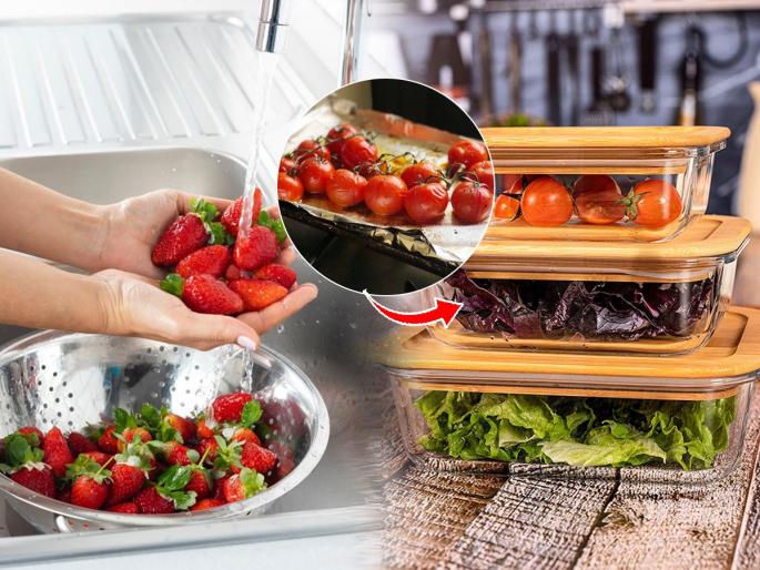 1 / 8१. बाजारात वारंवार जाणं होत नाही. किंवा मग रोजच्या रोज भाज्या, फळं घेणं होत नाही. अशावेळी आपण साधारण आठवडाभर पुरतील एवढ्या भाज्या आणि फळं एकदाच घेऊन ठेवताे.2 / 8२. पण बऱ्याचदा त्या भाज्या किंवा फळं साठवून ठेवण्यात आपल्याकडून काहीतरी चूक होते आणि त्यामुळे मग फ्रिजमध्ये ठेवूनही फळं- भाज्या सडून जातात. 3 / 8३. म्हणूनच फळं आणि भाज्या जास्त दिवस ताज्या राहण्यासाठी त्या फ्रिजमध्ये कशा पद्धतीने साठवून ठेवाव्या, याविषयी या काही खास टिप्स. या टिप्स kalejunkie या इन्स्टाग्राम पेजवर शेअर करण्यात आल्या आहेत.4 / 8४. स्ट्रॉबेरी साठवून ठेवायची असेल तर सगळ्यात आधी सगळ्या स्ट्रॉबेरी एका भांड्यात काढून घ्या. १ कप व्हिनेगर आणि ३ कप थंड पाणी एकत्र करून त्यात स्ट्रॉबेरी १० मिनिटांसाठी भिजत ठेवा. त्यानंतर त्यातून काढून कपड्याने पुर्णपणे कोरड्या करून घ्या. त्या व्यवस्थित कोरड्या झाल्या की एका डब्यात टिश्यू पेपर टाका. त्यात स्ट्रॉबेरी ठेवा आणि त्यावरून पुन्हा एक टिश्यू पेपर टाका. हा डबा फ्रिजमध्ये ठेवल्यास १ आठवडा तरी स्ट्रॉबेरी फ्रेश राहतील. 5 / 8५. सोलून ठेवलेल्या लसूण पाकळ्या जास्त दिवस फ्रेश ठेवायच्या असतील तर त्या एका डब्यात टाका. त्यात पाकळ्या बुडतील एवढं थंड पाणी टाका. डब्याचं झाकण लावून तो फ्रिजमध्ये ठेवून द्या. २ आठवड्याच्या आत या पाकळ्या वापरून टाकाव्या.6 / 8६. सफरचंद चिरल्यानंतर त्याच्या फोडी लाल पडू नयेत यासाठी त्या फोडी एका भांड्यात ठेवा. त्यात फोडी बुडतील एवढं थंड पाणी टाका. १ ते २ टी स्पून मीठ टाका. ५ मिनिटांसाठी फोडी तशाच पाण्यात राहू द्या. त्यानंतर त्या पाण्यातून काढा आणि एका डब्यात घालून फ्रिजमध्ये ठेवून द्या. फोडी लाल- काळ्या पडणार नाहीत. 7 / 8७. कोथिंंबीर किंवा कोणतीही पालेभाजी फ्रेश ठेवण्यासाठी काचेची अर्धी बरणी भरून पाणी घ्या. त्यात देठं बुडतील अशा पद्धतीने पालेभाजी किंवा कोथिंबीर बुडवून ठेवा. ही बरणी फ्रिजमध्ये ठेवून द्या. जशी पाहिजे तशी भाजी किंवा कोथिंबीर घेऊन वापरा. 8 / 8 ८. काकडी साठवून ठेवण्यासाठी ती एका डब्यात घाला. त्यात काकडी बुडेल एवढे पाणी आणि अगदी चिमुटभर बेकिंग सोडा टाका. डब्याचे झाकण लावून तो फ्रिजमध्ये ठेवून द्या.