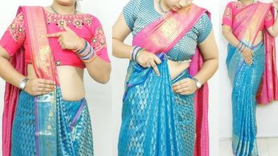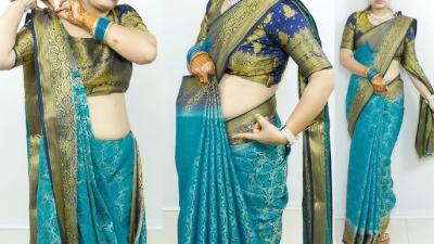 How To Look slim In Saree : साडी कमरेभोवती खूपच घट्ट आणि बेंबीच्या थोडीवर नेसा यामुळे पोटाचा खालचा भाग दबला जातो.
