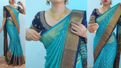 जॉर्जेट, शिफोन, क्रेप किंवा सॉफ्ट सिल्कसारख्या हलक्या फॅब्रिकच्या साड्या निवडा. या साड्या शरीराला व्यवस्थित चिकटतात आणि फुगत नाही ज्यामुळे तुम्ही बारीक दिसता.