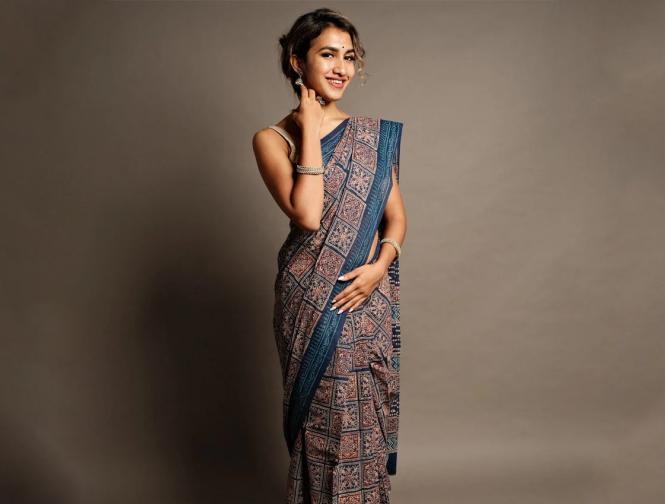 साडीवर मोठ्या फुलांऐवजी लहान डिझाईन्स किंवा उभ्या रेषा असाव्यात.