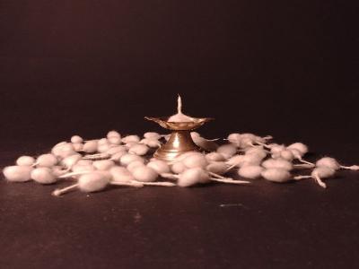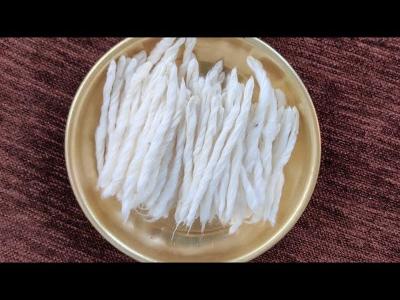प्लास्टिकची जाडसर पिशवी किंवा शीट घ्या. पिशवीवर कापूस लांबसर पसरवा. कापसावर थोडेसे पाणी शिंपडा, त्यामुळे कापूस प्लास्टिकच्या शीटला चिकटून चिकटून राहील. आता पिशवीसोबत कापूस हाताच्या तळव्यावर ठेवून गोलाकार फिरवा. अशाप्रकारे एकाच वेळी अनेक लांबसर वाती तयार होतील.