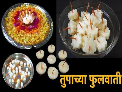 थोडासा कापूस घेऊन त्याच्या फुलवाती तयार करून घ्या. आता एका कढईत मेणबत्तीचे काही तुकडे घेऊन ते वितळवून घ्यावेत. त्यानंतर त्यात थोडंसं तूप आणि कापसाच्या ३ ते ४ वड्या घालाव्यात. हे सगळं मिश्रण व्यवस्थित विरघळवून घ्यावं. आता एका कपमध्ये हे मिश्रण ओतून त्यात एक फुलवात ठेवून त्यात ते वितळवून घेतलेले मिश्रण ओतून घ्यावे. त्यानंतर व्यवस्थित सुकू द्यावं. थोड्या वेळाने या वाती ट्रे मधून काढून घेऊन एका डब्यात स्टोअर करून ठेवाव्यात.