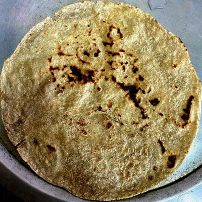 भाकरी हलक्या हातानं आणि एकसारखी जाडी ठेवून थापा. जास्त दाब दिल्यास भाकरी थापतानाच तुटते.