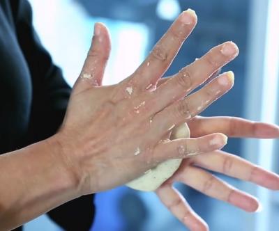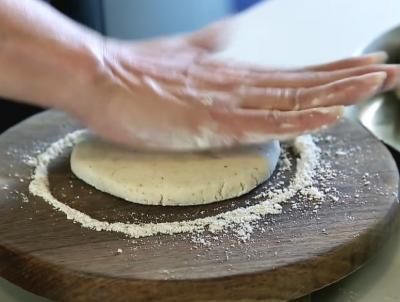 हा गोळा हातावर थापून गोलाकार चकती तयार करा.
