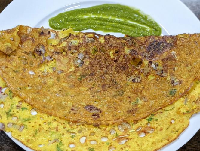 मिश्रण तयार झाल्यानंतर किमान १५ मिनिटं झाकून बाजूला ठेवा. यामुळे रवा किंवा बेसन फुगून पोळा मऊ आणि जाळीदार होण्यास मदत होईल.