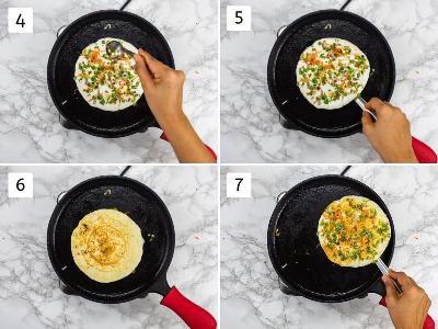 भाज्या नीट शिजण्यासाठी आणि उत्तपा मऊ होण्यासाठी वरुन झाकण ठेवून १ ते २ मिनिटं शिजवा.