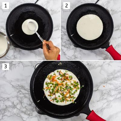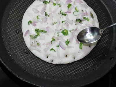 डोशासारखाच उत्तपा पसरवण्याची चूक करू नका. बॅटर ओतल्यावर हलकंसं गोलाकार ठेवा, जाडसरच राहू द्या. फक्त हलक्या हाताने गोलाकार फिरवा, जेणेकरून पिठातील हवा टिकून राहील आणि त्याला छान जाळी पडेल.