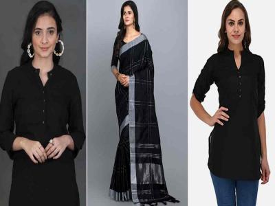 ७. काळ्या रंगाच्या कॉटनच्या साडीचा आपण असा एक छान शॉर्ट कुर्ता शिवू शकतो. हा काळ्या रंगाचा कुर्ता सगळ्या रंगांच्या जीन्सवर अगदी परफेक्ट मॅच होईल.