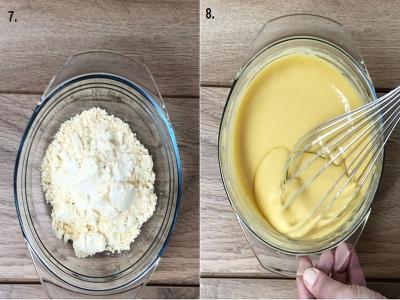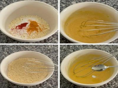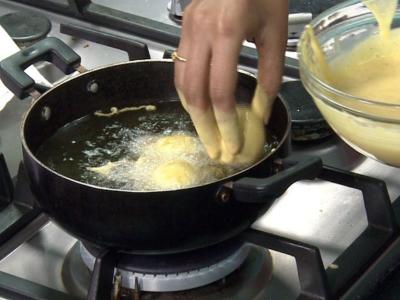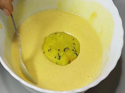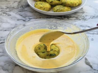 २. बेसन पीठ भिजवताना त्यात हळुहळु पाणी घालावे आणि पीठ कालवून घ्यावे, जेणेकरून पिठाच्या गुठळ्या होणार नाहीत. या बेसन पिठात आवश्यक ते मसाले व थोडेसा ओवा घाला यामुळे बाहेरचे आवरण चवीला टेस्टी होते. बेसन पीठ भिजवून झाल्यावर ते १० ते १५ मिनिटे झाकून ठेवावे जेणेकरून बेसन छान भिजून फुलून येते.