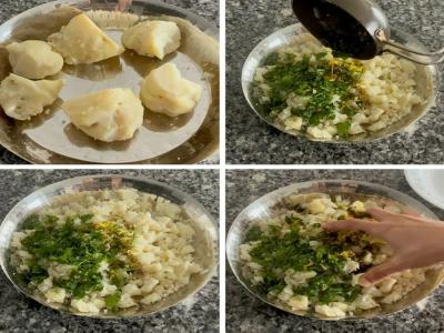 ४. मॅश करून घेतलेल्या बटाट्यात हिरवी मिरची, बारीक चिरलेली कोथिंबीर, कढीपत्ता असे काही ठराविक जिन्नस घालावेत, याने वड्याला आणखीनच चांगली टेस्ट येते.