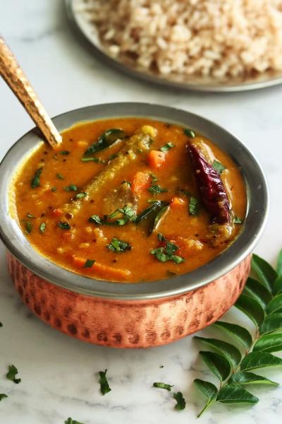 शेवग्याच्या शेंगा, लाल भोपळा आणि छोटे कांदे यांचा वापर केल्यास सांबारला नैसर्गिक चव येते.