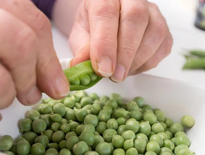 शेंगांच्या एका टोकावर किंचित कट मारा आणि मग शेंगा दाबून मटार बाहेर काढा.