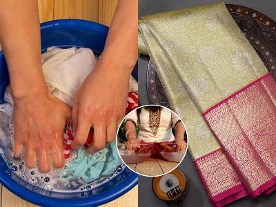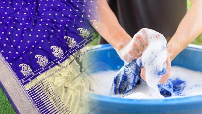 महागडी साडी धुताना डिटर्जंटऐवजी बेबी शाम्पू वापरा, यामुळे चमक कायम वर्षानुवर्षे जशीच्या तशी टिकून राहते.
