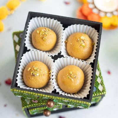 लाडूला पिवळा रंग हवा असेल तर बेसन पीठ चांगले भाजून घ्या. गॅस बंद केल्यानंतर देखील पीठ चमच्याने ढवळत राहा. कढई गरम असल्यामुळे पीठ भांड्याला चिकटते, ज्यामुळे ते करपून त्याचा वास येऊ लागतो.