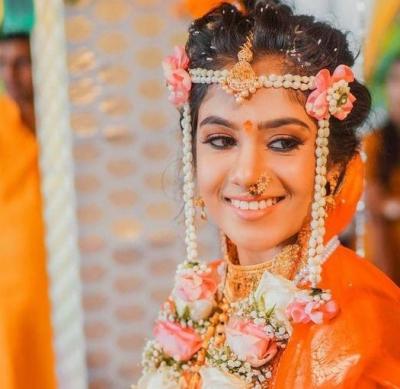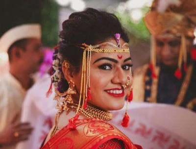 ४. लग्नात नवरीच्या बहुतेक साड्या या सोनेरी जर असणाऱ्या आणि टिपिकल काठपदराच्या असतात. म्हणूनच या सोनेरी जरीच्या साडीला सोनेरी रंगाच्या मुंडावळ्या अधिक शोभून दिसतात.