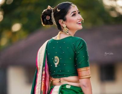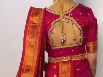 नऊवारीवर टिपिकल मराठी पद्धतीचं ब्लाऊज शिवायचं असेल तर दोन गोष्टी हमखास लक्षात ठेवा. त्यातली पहिली गोष्ट म्हणजे ब्लाऊज बंद गळ्याचं असावं आणि ब्लाऊजच्या बाह्या अगदी हाताच्या कोपऱ्यापर्यंत न घेता या पद्धतीने काेपऱ्यापासून एखादा इंच वर असाव्या. हे छोटेसे बदल तुमच्या लूकमध्ये कमालीचा बदल घडवून आणू शकतात.