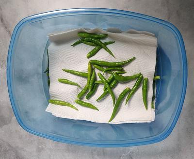 मिरच्या खरेदी केल्यानंतर त्या पाण्याने स्वच्छ धुवा. कापडावर पसरवून कोरडे होऊ द्या. त्याला ओलाव्या गेल्यानंतर साठवा.
