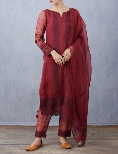 लेस वर्क सूट हा चांगला पर्याय आहे. यात आपण शिफॉन किंवा जॉर्जेटपासून बनवलेला सूट खरेदी करु शकतो. ज्यावर सुंदर वर्क केलेले असेल.