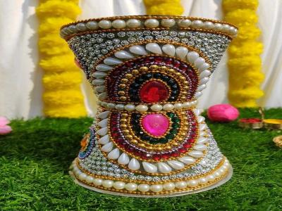 रंगीबेरंगी खडे, टिकल्या,मणी आणि मोत्यांचा वापर करुन सजविलेले माप आणखीनच सुंदर दिसते.