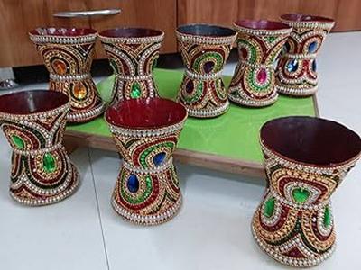 जर आपल्याला कुंदन वर्क आवडत असेल तर आपण अशा पद्धतीच्या कुंदन टिकल्या लावून सजविलेले माप विकत घेऊ शकता.