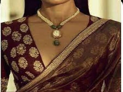 Jewellery styling tips for v-neck : necklace for v-neck blouse : v-neck blouse jewellery ideas : best necklace styles for v-neckline : v-neck saree blouse accessories : व्ही नेकलाईच्या ब्लाऊजला अधिक आकर्षक आणि स्टायलिश दिसण्यासाठी गळ्यात कोणत्या पॅटर्नचे नेकलेस घालावेत...