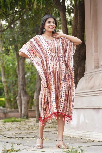 Kaftan Nighty For Women : कफ्तान तुम्हाला ५०० रूपयांपासून ते १००० रूपयांपर्यंत वेगवेगळ्या मटेरीयलमध्ये मिळते.