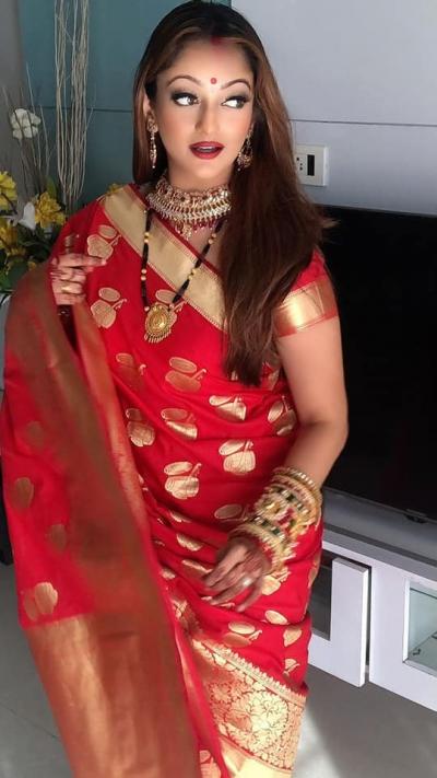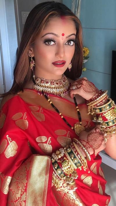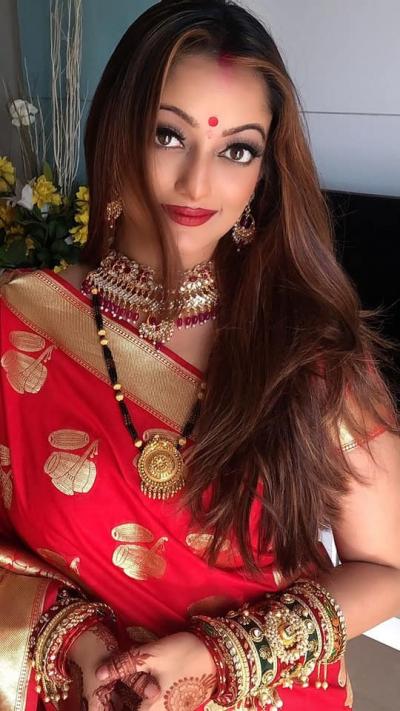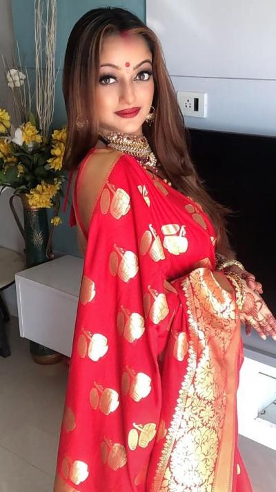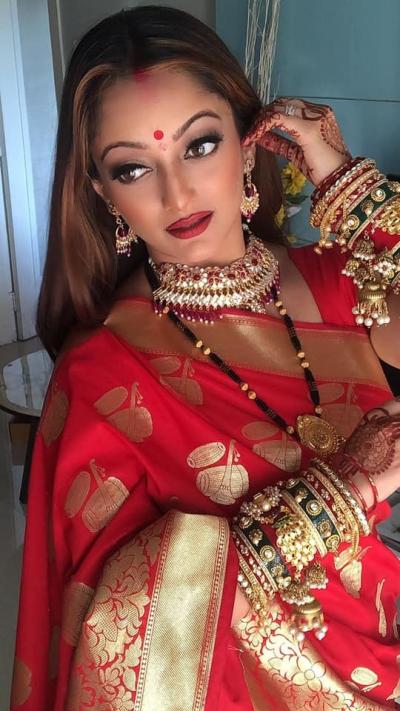 लाल साडीवरच्या या लूकमुळे मानसीचं सौंदर्य अधिक खुललेलं दिसून येतंय.