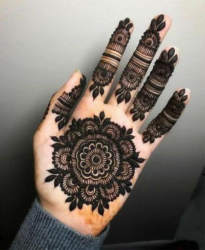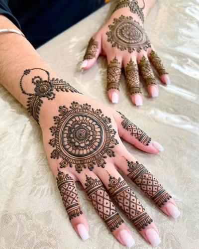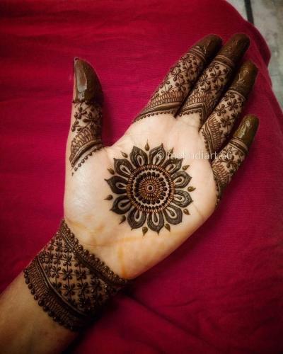या डिझाईन्सच्या मुख्य भाग हाताच्या मध्यभागी असतो. ज्यामुळे संपूर्ण हाताला एक संतुलित लूक मिळतो. (Circle Mehndi Design Back Hand)