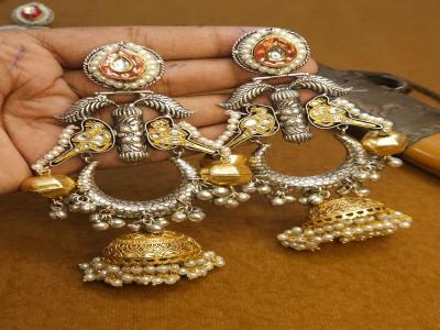 ३. सिल्व्हर फिनिश काश्मिरी देझुर झुमके :-