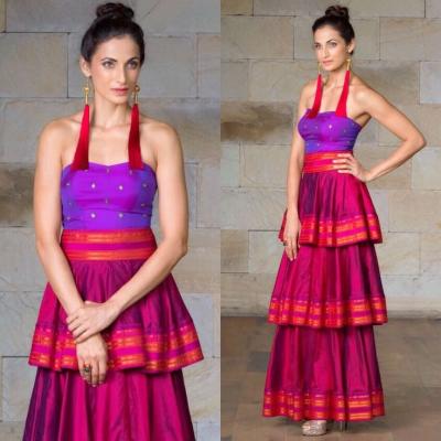सणासुधीला घालण्यासाठी किंवा खास प्रसंगांना घालण्यासाठी हा आऊटफिट मस्त आहे.