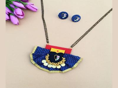 नेकलेस, चोकर, कानातल्यांसोबतच खण फॅब्रिक्सचे पेंडंट असणारे मंगळसूत्र कोणत्याही साडीवर घालू शकता.