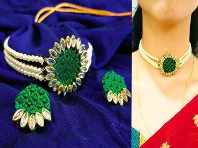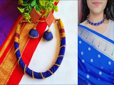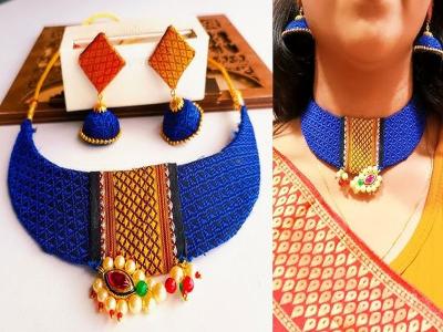 जर तुम्हाला साडीवर शोभेल अशी ठुशी घालायची असेल तर या प्रकारची खण फॅब्रिकची ठुशी खूप छान दिसेल.