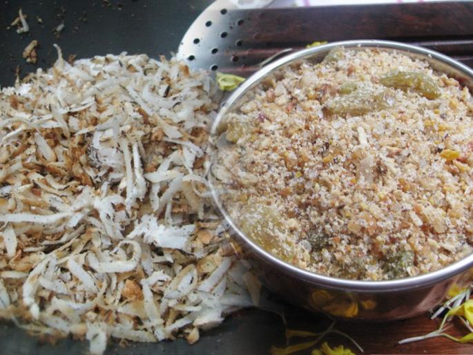 1 / 6१. खिरापत हा गणपती बाप्पाचा आवडीचा नैवेद्य, गणेशोत्सवासाठी तुम्ही खिरापत करणार असाल तर ती कमीत कमी वेळात एकदम झटपट कशी करायची, त्याच्या या काही सोप्या रेसिपी बघून घ्या... जास्त वेळही जाणार नाही. शिवाय गणरायासाठी पौष्टिक, चवदार नैवेद्य रोजच्या रोज केला जाईल.2 / 6२. खिरापत करण्याची पहिली एकदम सोपी रेसिपी म्हणजे खोबरं आणि पिठीसाखर घालून केलेली खिरापत. यासाठी खोबऱ्याचे काप करून घ्या. ते भाजून घ्या आणि थंड होऊ द्या. थंड झाले की साखरेसोबत मिक्सरमधून फिरवून घ्या. एकदम बारीक पावडर करू नये. थोडे जाडेभरडेच ठेवावे.3 / 6३. या रेसिपीसाठीही खोबऱ्याचे काप करून ते भाजून घ्या. नंतर थोडी खसखस आणि बदाम भाजून घ्या. थंड झाल्यावर खोबरे, साखर, बदाम, खारिकचे तुकडे, खसखस असं मिक्सरमधून थोडंसं फिरवून घ्या.4 / 6४. तिसऱ्या रेसिपीमध्येही भाजलेले खोबरे वापरायचे आहे. वेलची कढईत थोडी गरम करून घ्या. थंड झाल्यावर भाजलेले खोबऱ्याचे काप, डिंक पावडर, गुळ आणि वेलची मिक्सरमधून फिरवून घ्या.5 / 6५. सुकामेवा वापरूनही खिरापत करता येते. यासाठी काजू, बदाम, मनुका, अक्रोड, पिस्ते असा सगळा सुकामेवा थोडासा भाजून घ्या. त्यात थोडे खोबरेही भाजून टाका. आता हे सगळे भाजलेले पदार्थ थंड झाले की गूळ घालून मिक्सरमधून फिरवून घ्या. गुळाऐवजी अंजीर किंवा खजूराचाही वापर करू शकता.6 / 6६. आता खिरापत करण्याची आणखी एक रेसिपी पाहू या. यासाठी आपल्याला २०० ग्रॅम ज्वारीच्या लाह्या, अर्धी वाटी डाळवं, अर्धी वाटी खोबऱ्याचे बारीक तुकडे, अर्धी वाटी गूळ, अर्धी वाटी शेंगदाणे आणि २ टेबलस्पून साजूक तूप लागणार आहे. सगळ्यात आधी डाळवं, लाह्या, शेंगदाणे आणि खोबरे भाजून घ्या. त्यानंतर गूळ आणि तूप एकत्र गरम करून गुळाचा पाक करून घ्या. त्यात डाळवं, खोबरे, लाह्या, शेंगदाणे असं सगळं टाकून सगळं मिश्रण व्यवस्थित हलवून घ्या.... खिरापत किंवा पंचखाद्य झालं तयार.