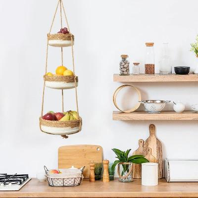किचनमधील उभ्या जागेचा (Vertical Space) वापर करण्यासाठी 'मल्टी-टियर हँगिंग बास्केट' हा एक अतिशय सुंदर आणि उपयोगाचा पर्याय आहे. यामध्ये एकाखाली एक अशा दोन किंवा तीन टोपल्या साखळीने जोडलेल्या असतात, ज्यामुळे एकाच जागेत जास्त सामान मावते.