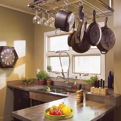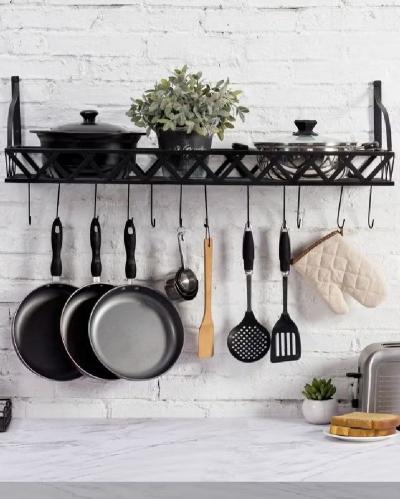 ११. भांडी लटकवण्यासाठी पॉट रॅक (Ceiling or Wall Pot Racks) :-