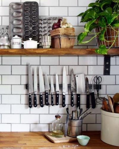 सुऱ्या किंवा कात्री ठेवण्यासाठी जागेचा वापर करण्याऐवजी भिंतीवर मॅग्नेटिक स्ट्रीप लावा. यामुळे सुऱ्या सुरक्षित राहतात आणि दिसायलाही मॉडर्न दिसते.