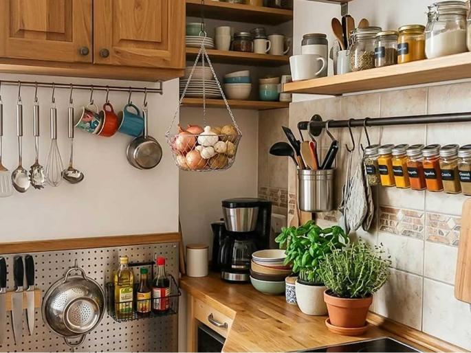 1 / 13किचन कितीही मोठं असलं तरी सामानाचा पसारा झाला की ते छोटंच वाटू लागतं. विशेषतः शहरातील छोट्या घरांमध्ये किचन ओट्यावर भांडी आणि डब्यांची गर्दी झाली की काम करणं कठीण होतं. पण तुम्हाला माहीत आहे का? तुमच्या किचनमधील भिंती आणि कॅबिनेटच्या खालची रिकामी जागा वापरून तुम्ही तुमचं किचन 'सुपर स्पेशिअस' बनवू शकता. छोटं किचन असलं की वस्तू ठेवताना गोंधळ होतो आणि किचन अधिकच भरगच्च दिसू लागतं. अशावेळी किचन नीटनेटके आणि स्पेशिअस दिसण्यासाठी स्मार्ट स्टोरेज आयडियाज वापरणं खूप गरजेचं ठरतं(hanging rack ideas for kitchen).2 / 13अशातच हँगिंग स्टोरेज आयडियाज हा एक सोपा, किफायतशीर आणि स्टायलिश उपाय ठरू शकतो. भिंतींचा योग्य वापर करून तुम्ही किचनमधील बराचसा गोंधळ कमी करू शकता आणि जागा मोकळी करू शकता. अशा ५ जबरदस्त हँगिंग स्टोरेज आयडियाज पाहूयात ज्या केवळ तुमची जागाच वाचवणार नाहीत, तर तुमच्या किचनला एक मॉडर्न आणि स्टायलिश लूकही देतील. सामानाचा पसारा कमी करून किचन कसं स्मार्ट बनवायचं, ते पाहूयात.... 3 / 13किचनमधील पळ्या, चमचे किंवा पॅन लटकवण्यासाठी एस-हुक्सचा वापर करा. हे हुक्स तुम्ही कोणत्याही रॉडला अडकवू शकता. गॅसजवळ किंवा भिंतीवर मजबूत एस-हुक्स (S-Hooks) लावून कढई, पळी, चमचे टांगू शकता. यामुळे भांडी सहज मिळतात आणि किचनमध्ये जागाही वाचते.4 / 13सुऱ्या किंवा कात्री ठेवण्यासाठी जागेचा वापर करण्याऐवजी भिंतीवर मॅग्नेटिक स्ट्रीप लावा. यामुळे सुऱ्या सुरक्षित राहतात आणि दिसायलाही मॉडर्न दिसते. 5 / 13 सिंकच्या वरच्या रिकाम्या जागेत हँगिंग रॅक बसवा. धुतलेली भांडी तिथेच सुकवायला ठेवल्याने ओट्यावरची जागा वाचते.6 / 13 कांदे, बटाटे किंवा फळे ठेवण्यासाठी बास्केट्स भिंतीवर किंवा कॅबिनेटच्या खाली लटकवा. यामुळे ओटा पूर्णपणे रिकामा राहील.7 / 13 जेव्हा तुमच्या किचनच्या भिंतींवर आधीच कॅबिनेट किंवा खिडक्या असतील, तेव्हा 'सीलिंग' म्हणजेच छताचा वापर करणे हा सर्वात स्मार्ट पर्याय ठरतो. छताला लटकणारे रॅक्स केवळ जागा वाचवत नाहीत, तर तुमच्या किचनला एक 'प्रोफेशनल शेफ' किचनसारखा लूक देतात.8 / 13 किचन ओट्यावर सर्वात जास्त जागा व्यापणाऱ्या गोष्टी म्हणजे पेपर टॉवल रोल, ॲल्युमिनियम फॉयल आणि क्लिंग फिल्मचे डबे. हे पदार्थ वारंवार लागतात, पण ते ओट्यावर ठेवल्याने पसारा दिसतो. यावर 'अंडर-शेल्फ होल्डर्स' हा एक जादुई उपाय आहे.9 / 13 किचनमधील रिकाम्या भिंतींचा वापर करण्याचा सर्वात स्टायलिश आणि सोपा मार्ग म्हणजे 'वॉल-माउंटेड रेलिंग सिस्टम'. ही एक धातूची लांब रॉड असते जी भिंतीवर बसवली जाते आणि त्यात विविध प्रकारचे सामान लटकवता येते.10 / 13 बऱ्याचदा आपण किचनच्या भिंतींचा विचार करतो, पण किचनच्या दरवाजाची मागची बाजू किंवा कॅबिनेटच्या दरवाजांचा वापर करायला व