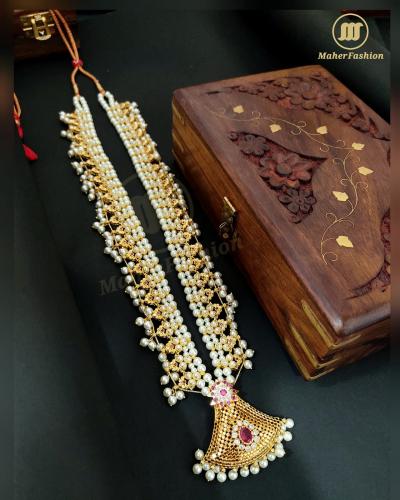 मोत्यांमध्येसुद्धा कोल्हापूरी साज जास्त उठून दिसतो.