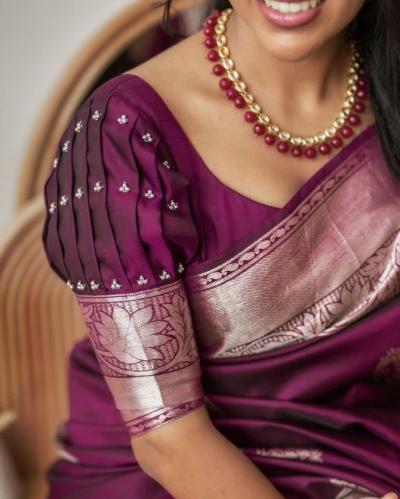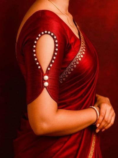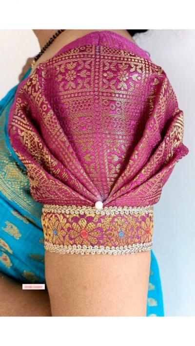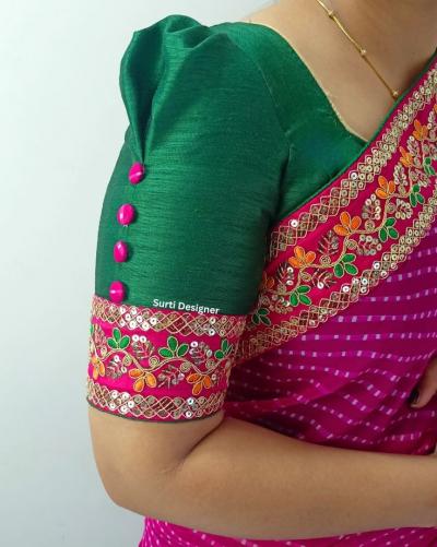 ब्लाऊजमध्ये चुण्या आणि बटन्स असे पॅटर्न तुम्ही निवडू शकता. साडीच्या काठाच्या रंगाचे बटन्स ब्लाऊजच्या मागच्या बाजूला आणि बाह्यांना तुम्ही लावू शकता.(Beautiful Sleeve Designs)