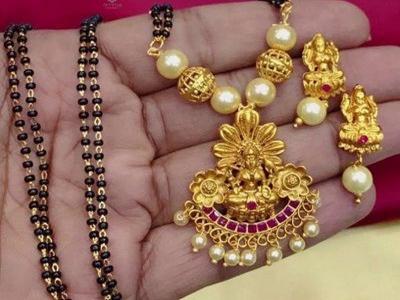 ४. पारंपरिक साऊथ इंडियन टच देणारे हे टेंपल डिझाईन चंद्रकोर मंगळसूत्र सण - समारंभासाठी उत्तम आहे.