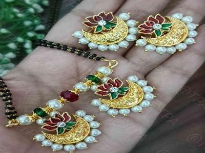 ८. सध्या असे नाजूक कमळाचे डिझाइन्स असलेले दागिने फारच ट्रेंडी आहेत. त्यामुळे चंद्रकोर आणि असे रंगीबेरंगी कमळाचे डिझाईन्स असलेले मंगळसूत्र घातल्यास इतर कोणताही नेकलेस किंवा दागिन्यांची गरजच भासत नाही.