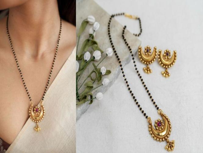 Latest Chandrakor Mangalsutra Designs : Chandrakor design mangalsutra : new Chandrakor style mangalsutra : चंद्रकोर डिझाईन्सच्या मंगळसूत्राची जादू, पारंपरिकतेचा आधुनिक साज दिसेल गळयात शोभून...