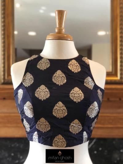आपण साधी साडी नेसणार असून तर त्यावर कलामकारी किंवा ब्लॉक प्रिंट असलेला हॉल्टर नेक ब्लाऊज अतिशय उठून दिसतो. हा ब्लाऊज गळ्याभोवती बंद असतो, त्यामुळे ज्वेलरी घालण्याची गरज नाही.