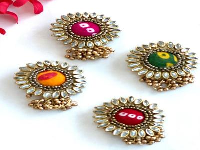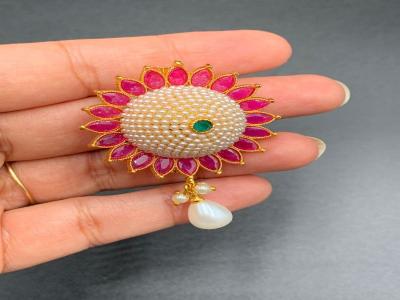 कुंदन वर्क असलेले साडी पिन लग्न समारंभ आणि सणांसाठी परफेक्ट पर्याय ठरतात. विविध रंगांच्या कुंदन आणि चमचमत्या स्टोन्सने सजवलेल्या पिन्स तुमच्या साध्यातल्या साध्या साडीलाही उठावदार लूक देतात. या प्रकारात पिकॉक डिझाइन', 'फ्लोरल पॅटर्न', 'हंस डिझाइन' अधिकच सुंदर दिसतात.